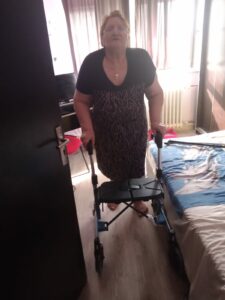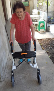 Lucreția Mitea is 75 years old and she lives with her family in Bihor County, Romaina. She was diagnosed with coxarthrosis in 2016, and since then, her condition has worsened, and her mobility has been limited. She used to be very sad because she could no longer participate in household activities as she did before. She had to spend most of her time in bed without appropriate mobility equipment. She did not like to ask others for help. The walking frame she received as a donation improved her mobility and general mood.